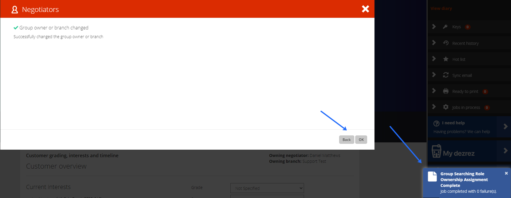 You will receive a notification in the bottom right to show this action is being performed. Click 'OK' on the final screen to finish this task. Or if you wish you can 'Go back' and make further changes.