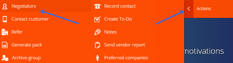 In the applicant/ vendor card, click into the 'Actions' menu and select the ''Negotiators' ' option.